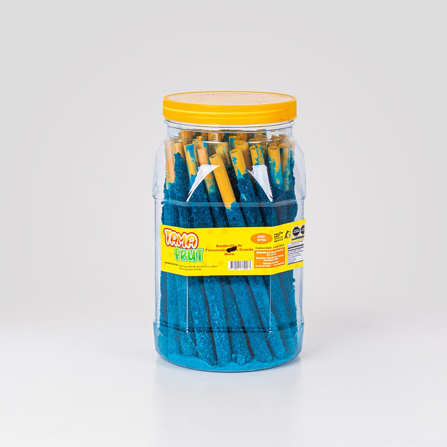 La Banderilla Azul de Tamarindo Kuruta 50 Pz es un dulce tradicional empleado como decoración comestible de una gran variedad de bebidas refrescantes, mencionando como ejemplo los azulitos o pitufos.