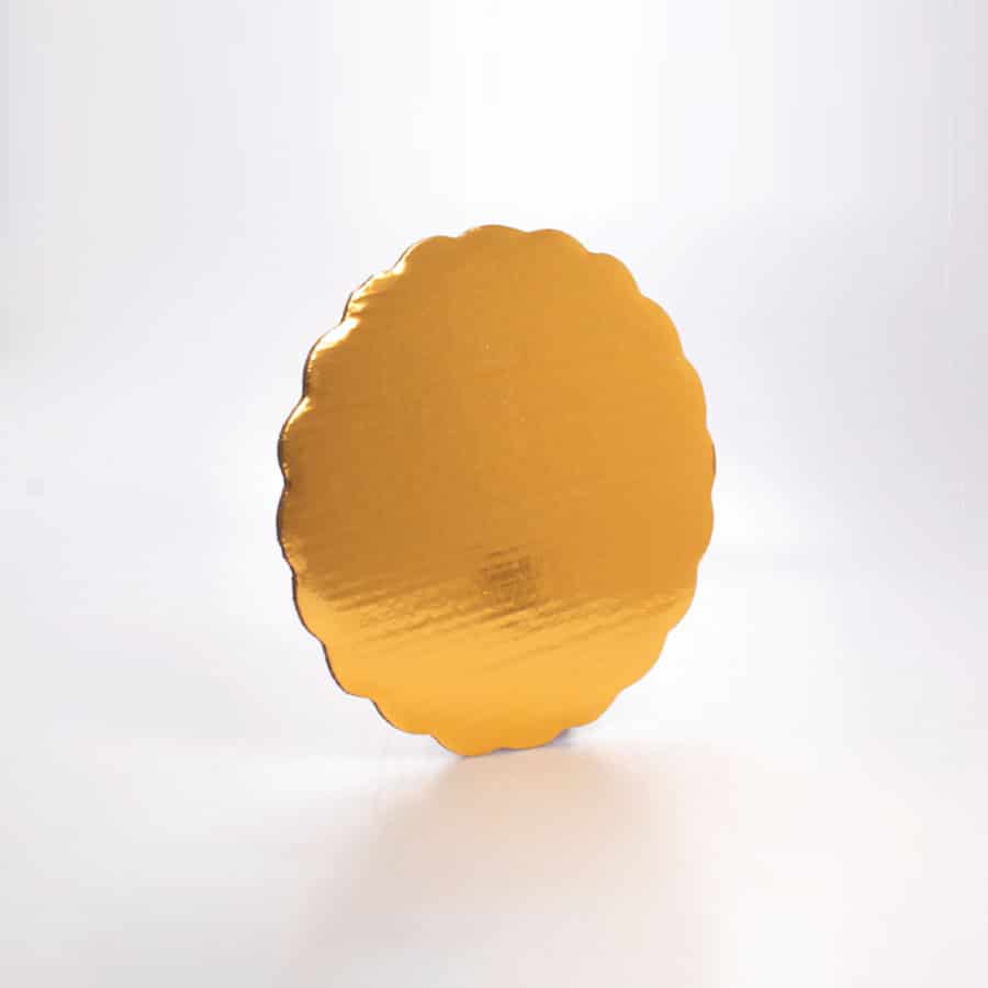 Base dorada redonda de 26 cm, resistente y llamativa. Ideal para pasteles grandes o tartas decoradas.