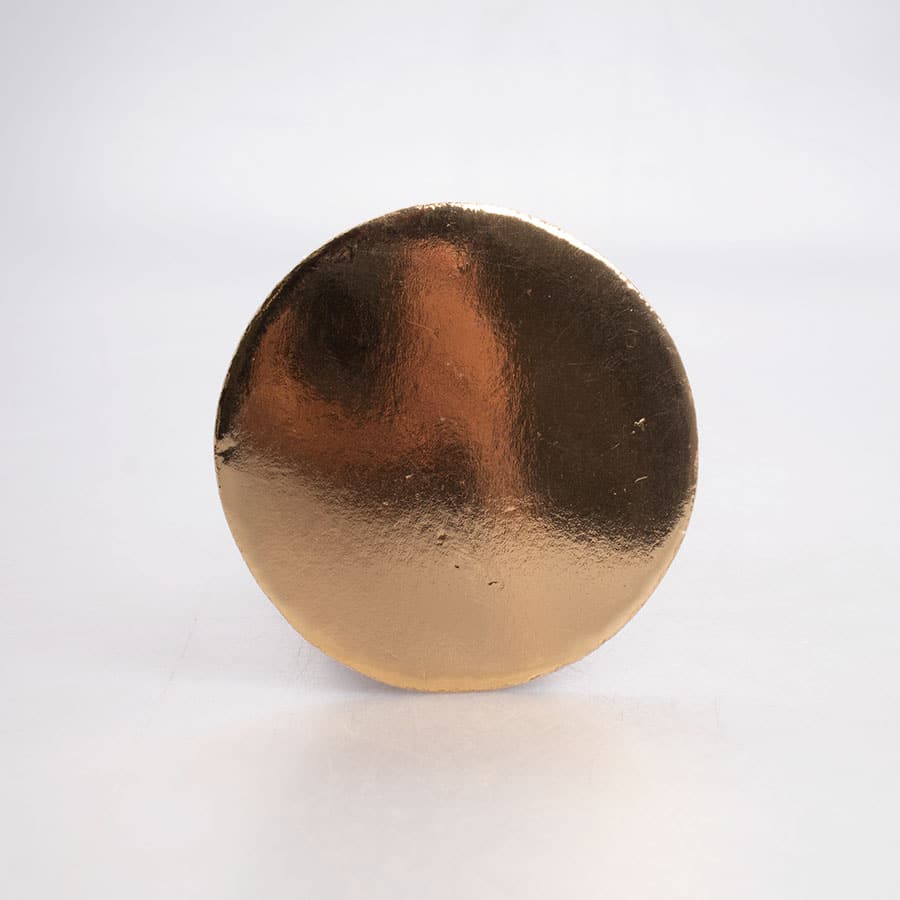 Pequeña base dorada redonda de 8 cm, perfecta para cupcakes decorados o mini tartas.