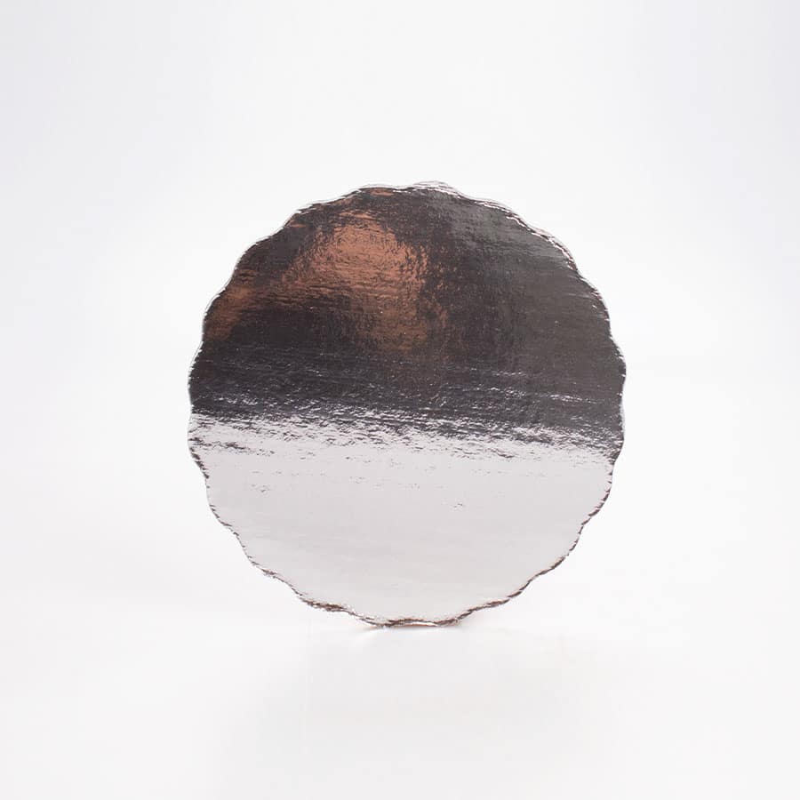 Base redonda plateada de 16 cm, con acabado elegante para presentación profesional.
