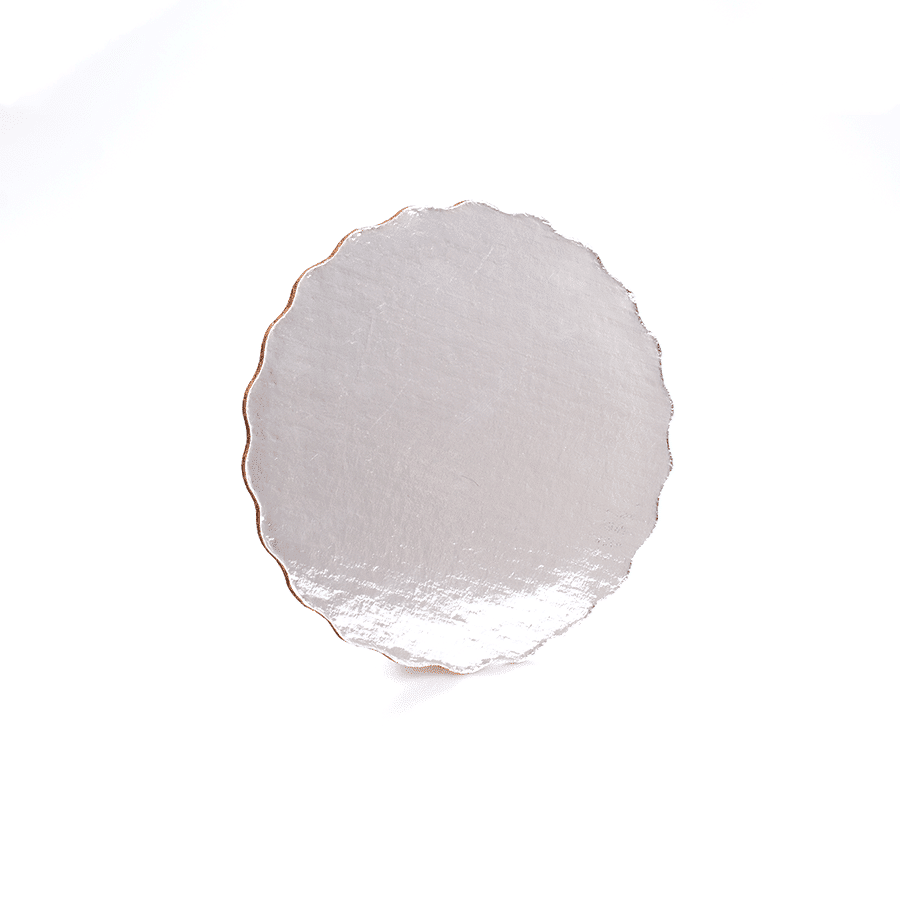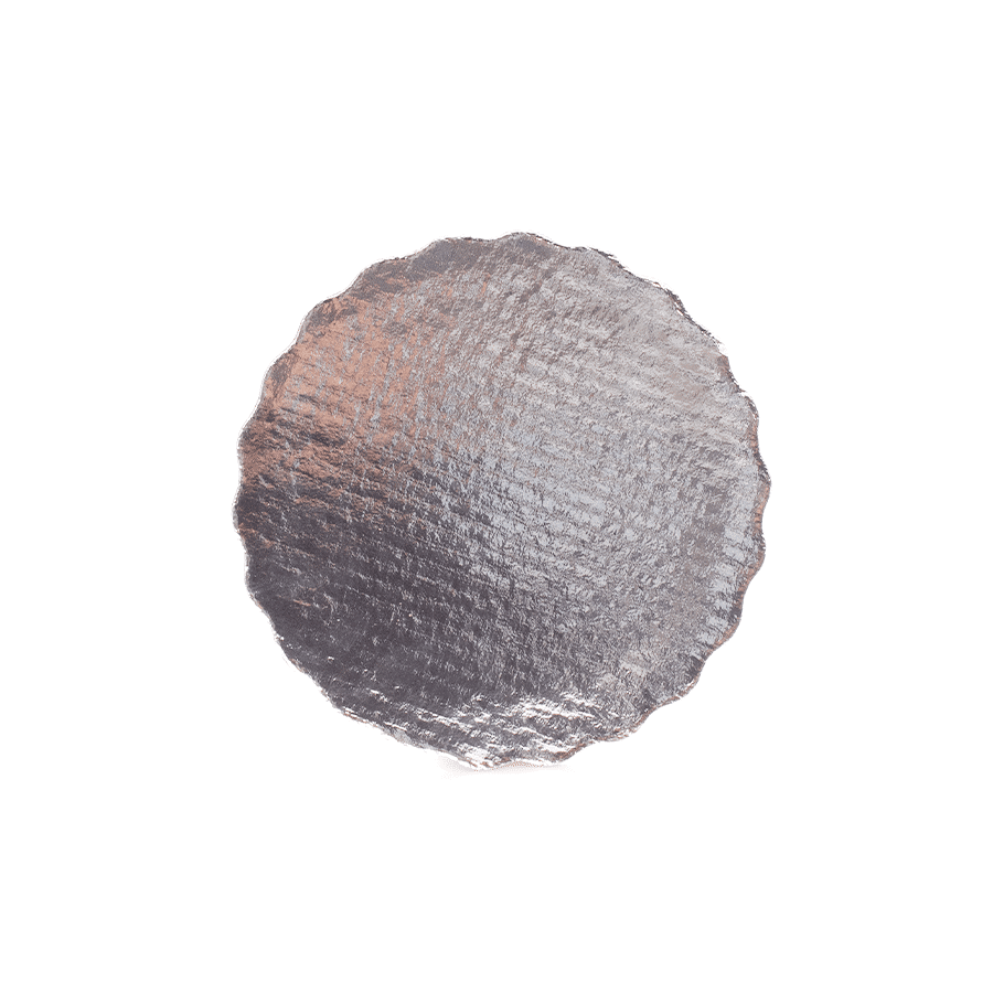 Base redonda plateada de 20 cm, versátil para tartas medianas y grandes. Ideal para uso profesional.