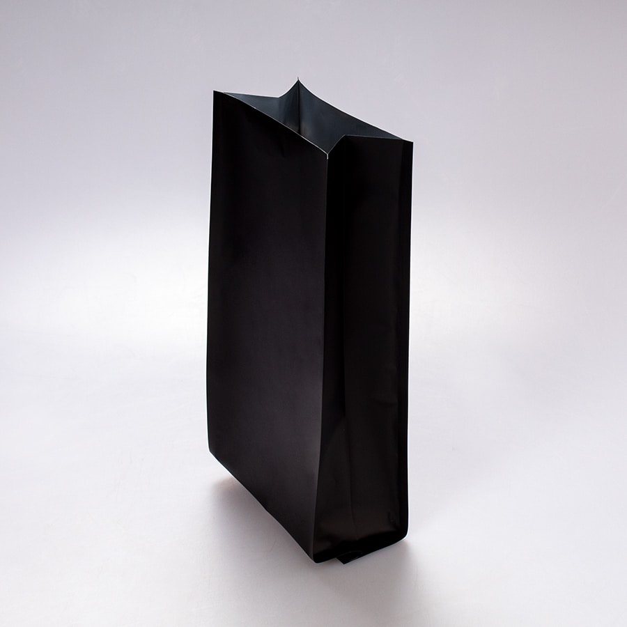 La Bolsa 4 Sellos Trilaminada Negra 500 Gr posee una forma y diseño único que asemeja una base al momento de envasar, está elaborada con un material que la convierte en una bolsa muy resistente y es perfecta para el envasado de una gran variedad de productos como café, granos, semillas, polvos, fruta deshidratada entre otro más. La capacidad recomendada de la bolsa es de 500 Gr.