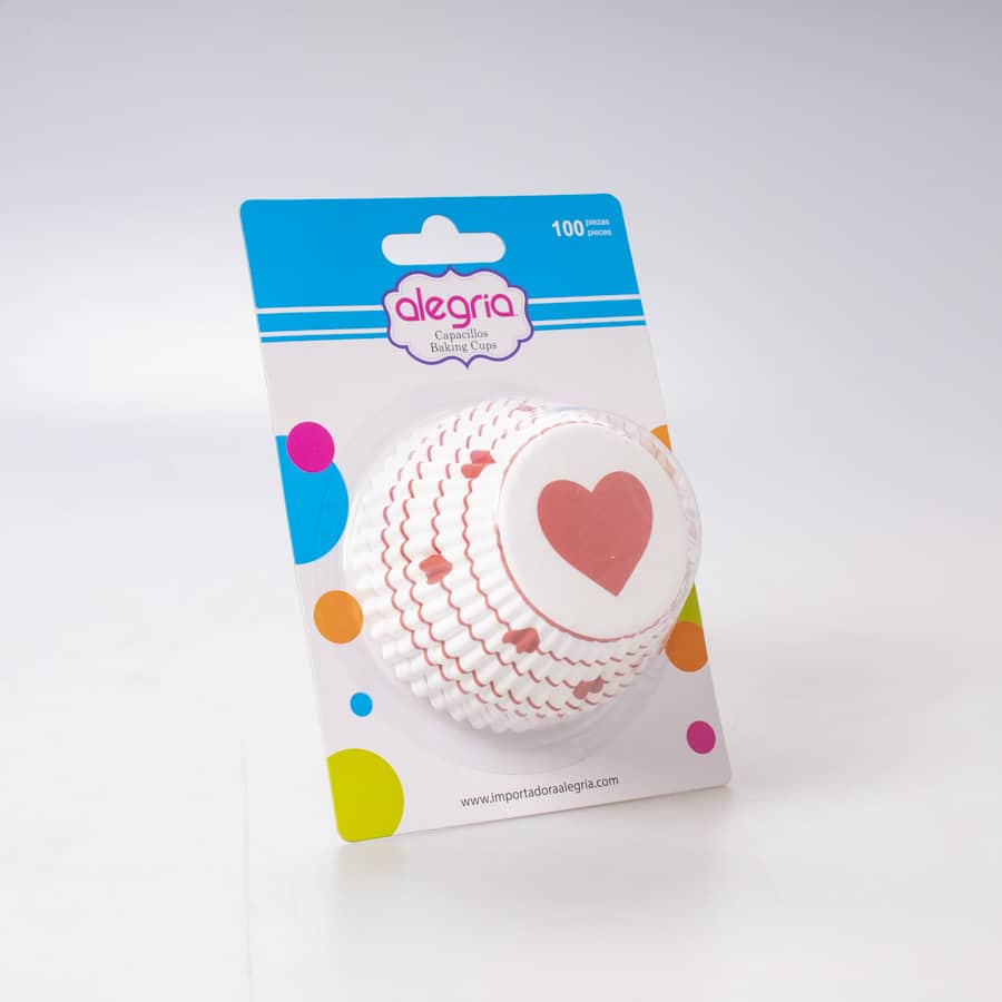Capacillo Estándar Blanco con Líneas y Corazones 100 Pz ideal para elaborar panquecillos y cupcakes de manera fácil y sencilla.