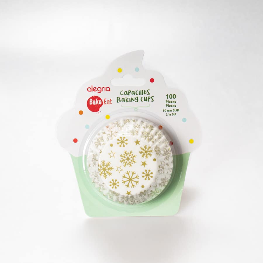 El Capacillo Estándar Copos Ocre 100 Pz está elaborado con un diseño muy llamativo alucivo a las fiestas navideñas y con un ligero encerado en el interior del capacillo, lo que permite que la mezcla que se vierte en su interior se despegue del capacillo de manera fácil, sin duda la mejor opción para una gran variedad de postres navideños.