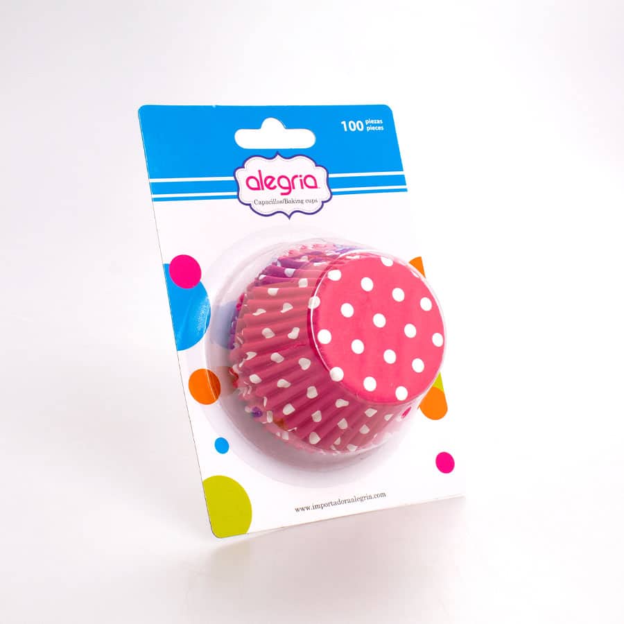 El Capacillo Estándar Polka Dot 100 Pz es un accesorio indispensable en la elaboración de postres como muffin y cupcackes, manteniendo el contenido en su interior y tomando una forma adecuada que ocupa todo el espacio disponible a la hora de hornear.