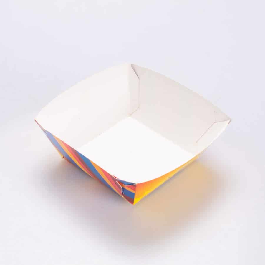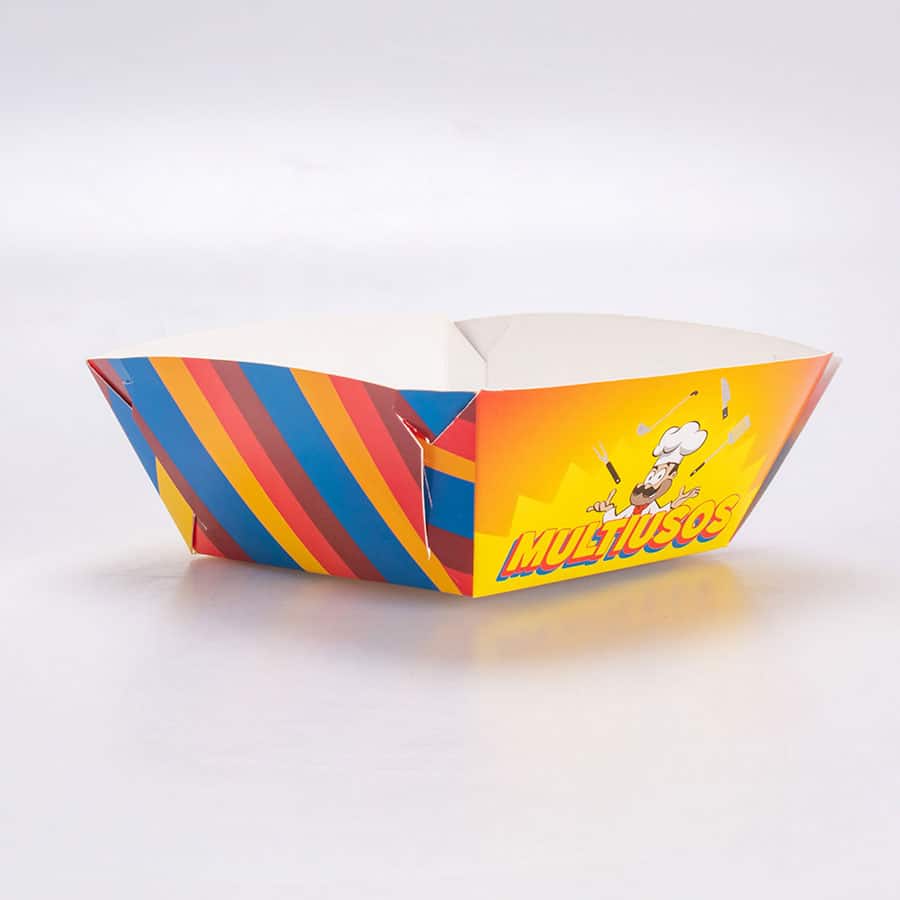 Por su forma práctica y agradable diseño la Charola Impresa Multiusos de Cartón se convierte en la mejor opción al momento de transportar tus snacks y botanas favoritas permitiéndote disfrutarlas sin inconvenientes.