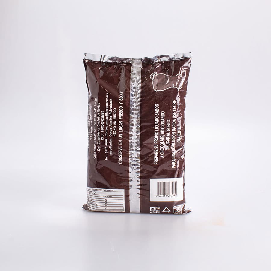 La Cocoa Tipo Holandesa La Esperanza 1 Kg es el ingrediente perfecto para la elaboración de bebidas con sabor a chocolate o postres variados como trufas brownies pasteles y muchos más postres frios