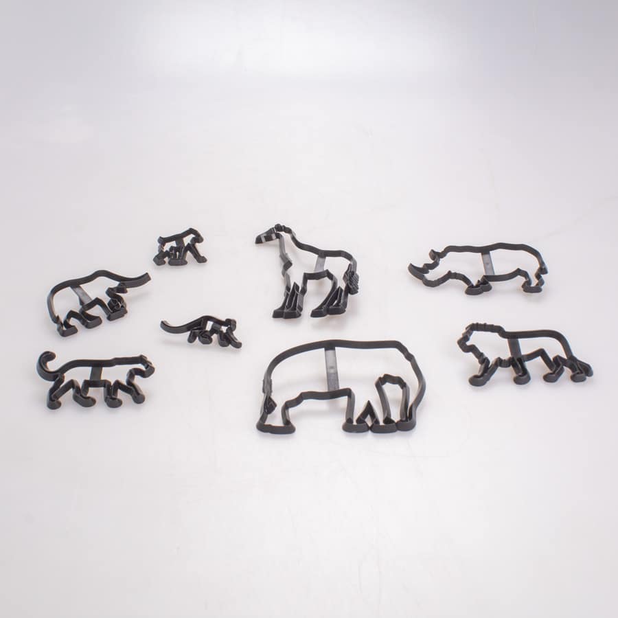 El set de Cortadores de Galletas Animales Safari 8 Pz posee divertidas formas de animales y se emplea para poder realizar cortes sobre masa para hornear galletas, además también se emplea para poder realizar cortes y formas sobre coberturas de consistencia firme como el fondant.