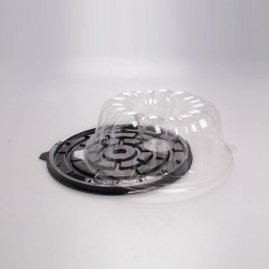 El Domo Pet para Gelatina 23 Cm es uno de los domos con base negra y tapa transparente en forma de rosca, ideal para poder desmoldar gelatinas o flanes en forma de rosca, protegiéndolos contra la temperatura y los factores externos.