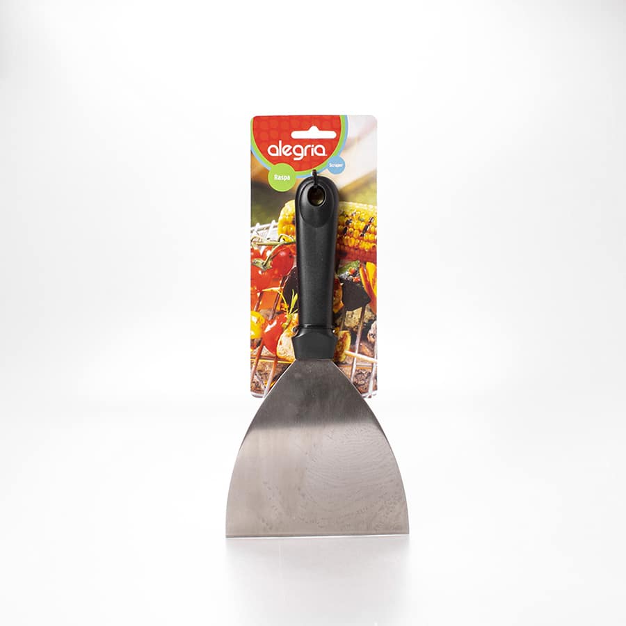 La Espátula Raspa Mango Negro Alegria es uno de los accesorios que suelen emplearse con mayor uso en los restaurantes para poder elaborar una gran variedad de alimentos a la plancha tales como hotcakes, huevos, hamburguesas o cortes de carne, garantizando un manejo adecuado de los mismos.