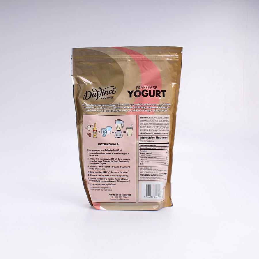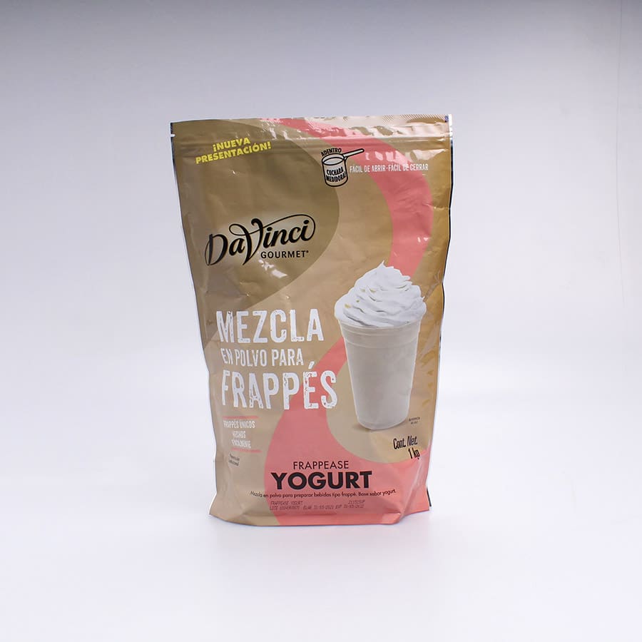 La Mezcla para Frappes Sabor Yogurt DaVinci 1 Kg es una base en polvo con sabor a yogurt que te permite crear las mejores preparaciones de bebidas combinandola con leche y los jarabes favoritos crea los más deliciosos frappes con sabor a yogurt