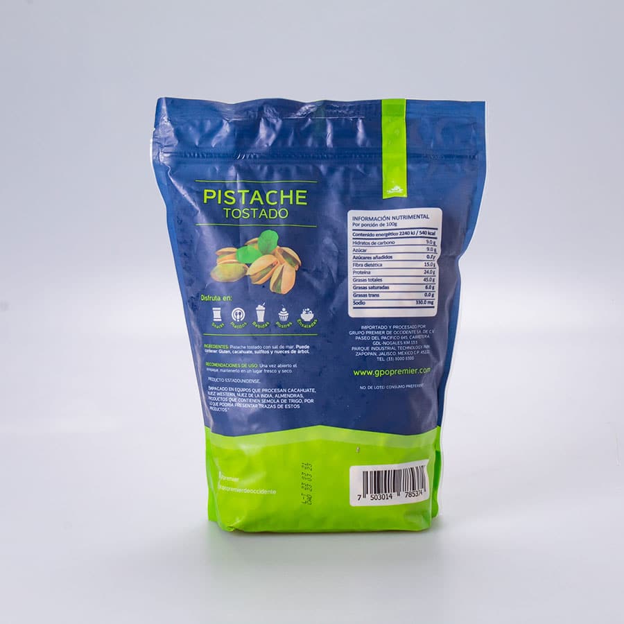 1 kg de pistaches salados marca Premier. Ideal para ventas a granel, bares, eventos o como snack saludable. Producto de alta calidad, gran tamaño y excelente presentación. Muy demandado en tiendas gourmet o de productos naturales.
