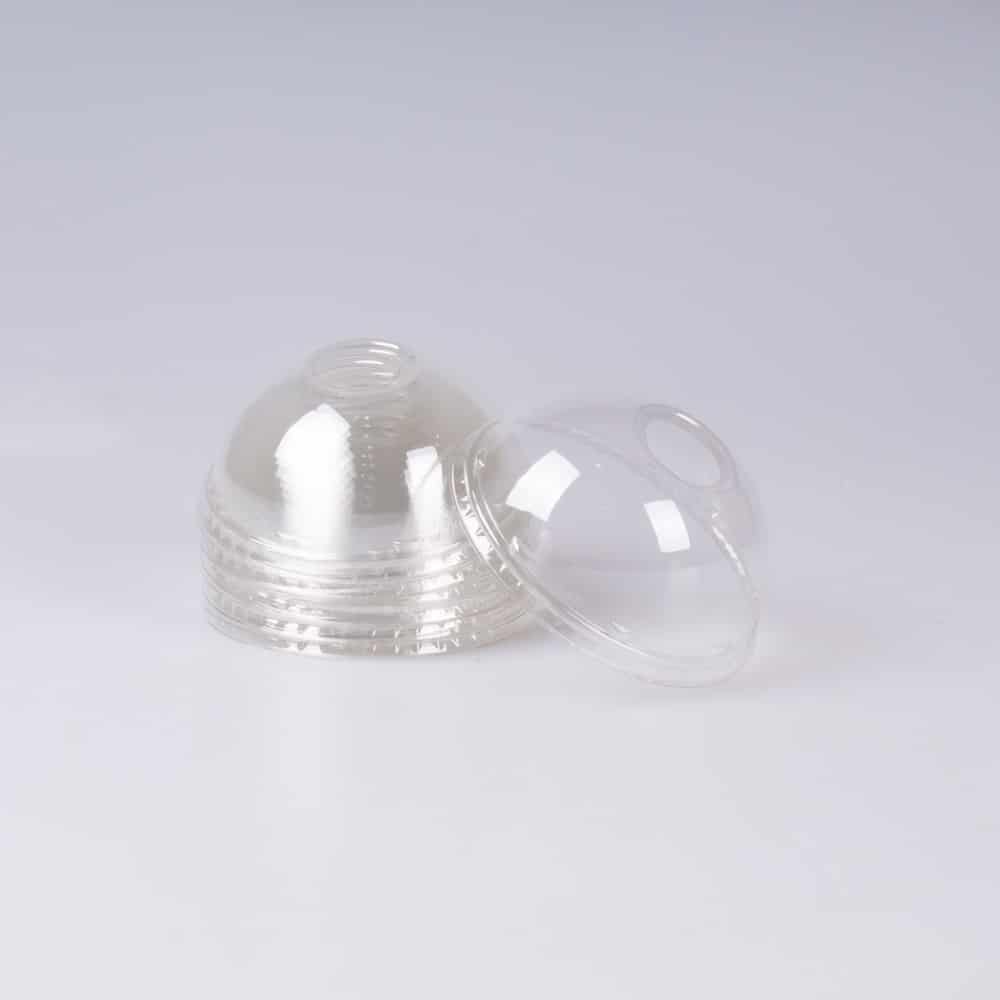 Cubra cada vaso transparente con una de nuestras tapas transparentes que previenen derrames. Se encuentran disponibles en estilo plano o en estilo domo
