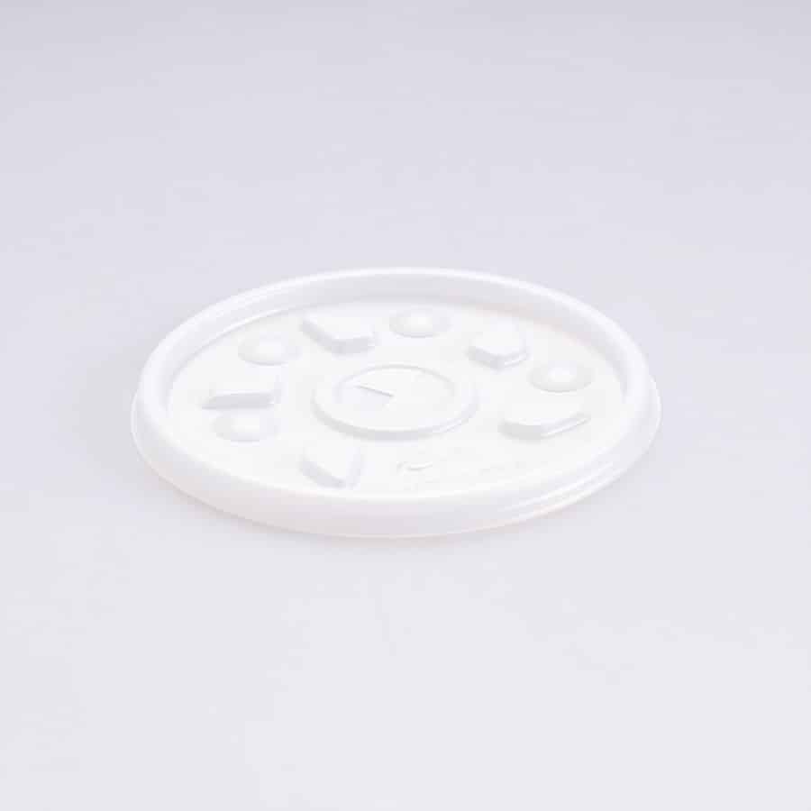 Tapa plana que suele implementarse en los vasos y contenedores de unicel, resguardando la temperatura de los alimentos y evitando derrames.