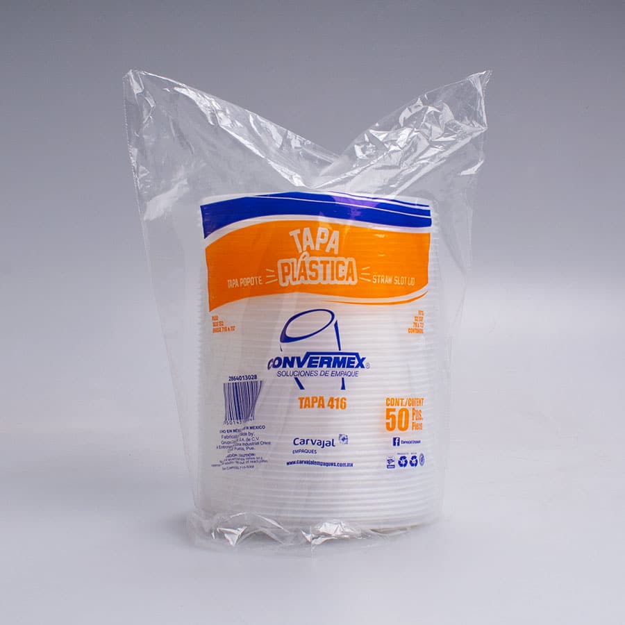 La Tapa Perforada 416 Convermex 50 Pz es una tapa traslucida que embona perfectamente en los contenedores de 1 Lt (732) y de 1/2 Lt (716) respectivamente manteniendo la temperatura de tus bebidas y alimentos por más tiempo su ranura es ideal para poder disfrutar con un popote bebidas como jugos o licuados