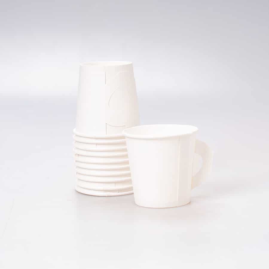 Vaso de Papel Bco 4 Oz C/Asa SOLO 50 Pz ideal para poder disfrutar de sus bebidas calientes favoritas gracias a su práctico diseño con asa y al material con el que se encuentra hecho. Ideal para servir el café espresso.